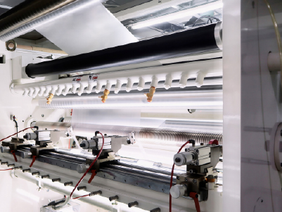 精密的自動張力控制可精確收放卷膜,捲取搭配接觸式壓輪有效控制收捲同時準確控制卷膜收放張力,確保裁切出來的小卷材寬度一致邊緣使切割過程更為穩定,確保製程的精準度。此外,完善的吸塵系統能有效吸取清理碎屑,防止殘料附著膜面汙染產品。